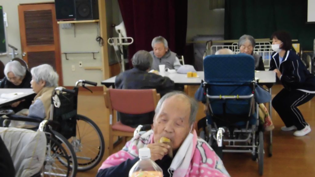 季節を感じる焼き芋を食べられ、皆さん笑顔で「美味しいな~」「すくもで焼き芋すると昔を思い出す」などの声が挙がっていました。本当に皆さんいい表情をされていました。